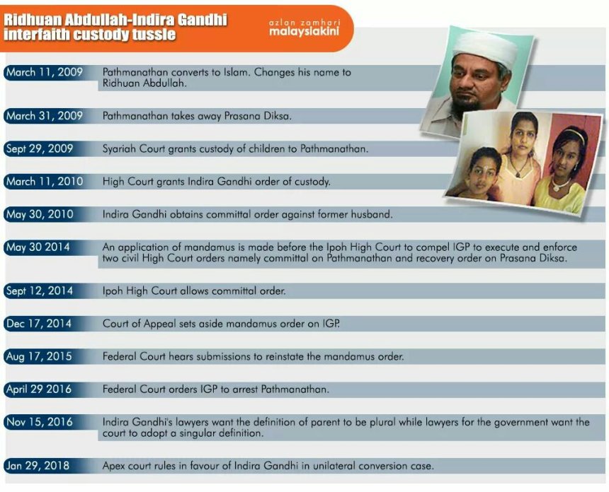Indira’s former husband who now goes by the name Muhammad Riduan converted all three of their children on April 2, 2009 without her consent, and applied to the Shariah Court for their custody.