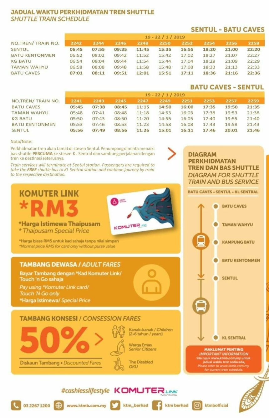 For more information do visit KTM website at http://www.ktmb.com.my or call customer service at 03-2267 1200.