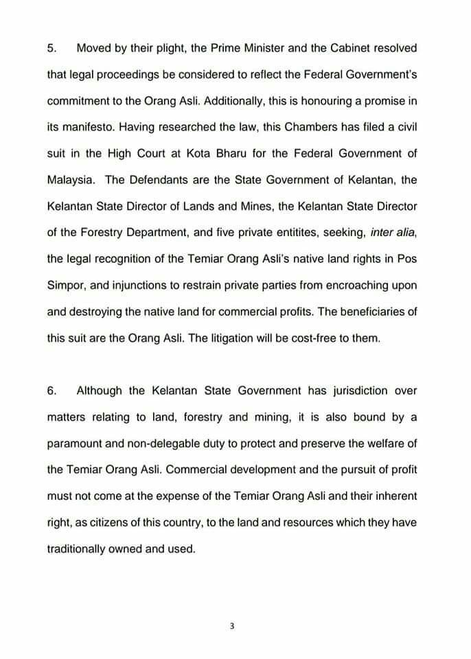 The defendants named in the suit are the Kelantan state government, state director of Lands and Mines, state director of the Forestry Department, and five private entities.