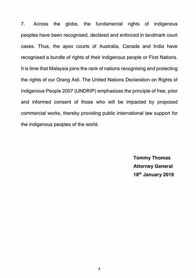 “For the first time since Merdeka, the federal government is instituting legal proceedings on behalf of the Orang Asli in recognition of the federal government’s constitutional and legal duty to protect and promote their wellbeing and advancement,” attorney-general Tommy Thomas said in a statement today.