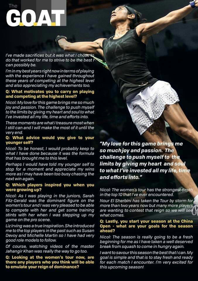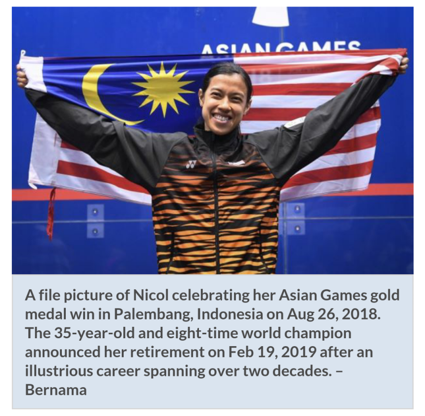 “After more than 20 years playing squash for Malaysia, competing on the professional tour and achieving the utmost best from my career being the only Malaysian athlete to achieve these accolades and to be recognised as the greatest female squash athlete of all time by my peers, I can proudly say that I am ready and happy to announce my retirement at the end of this seasonal tour,” said Nicol.