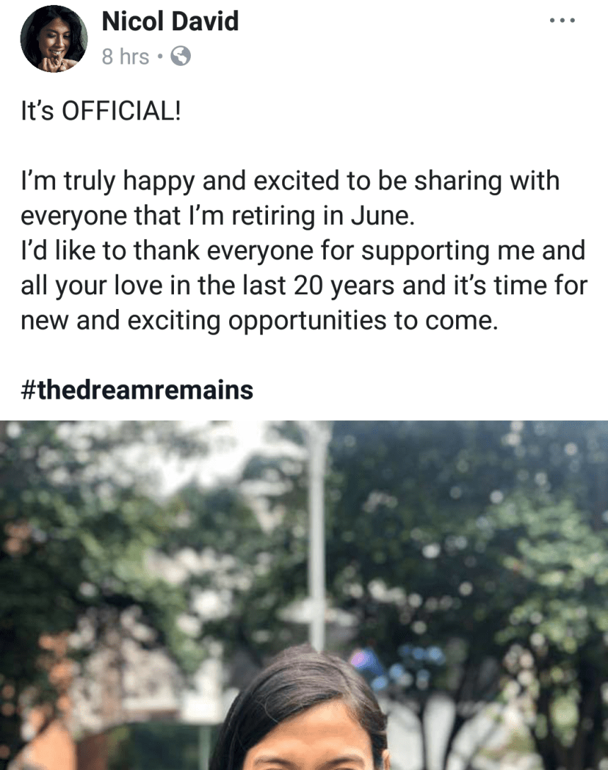 “My mind and body have battled it out to stay at the very top of my game for such a long time that I feel that I only have this last big push left for the final season to give it all I have before I enter the next phase of my life,” she said on Monday (Feb 18) thru her official facebook page.