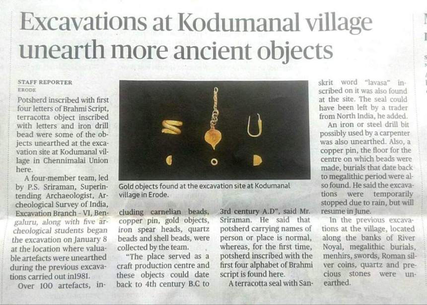 Apart from swords and arrow heads, the people of Kodumanal also produced beads, shell bangles and pottery. Roman silver coins, gold and silver spirals, and a bronze statue of a lion were also found at the site.