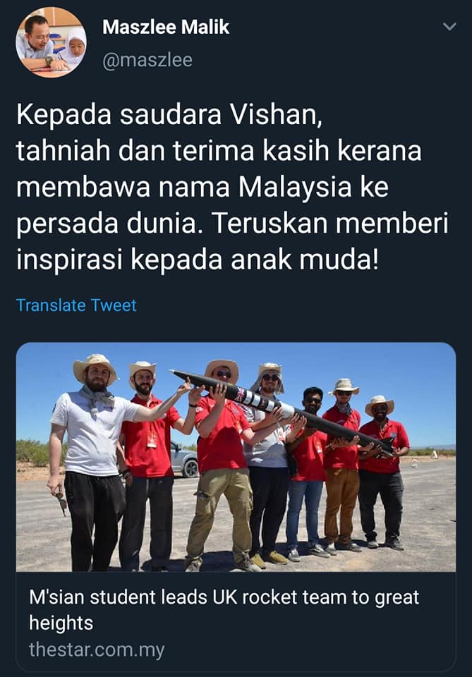 7 Posted on July 9, 2019 by TM Editorial's Leave a comment Wishes from Education Minister Previous Next Return to Malaysian student Vishan create new altitude record with UK team