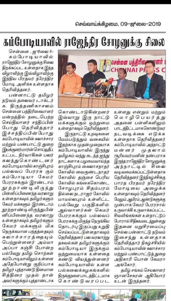 c0 Posted on July 17, 2019 by TM Editorial's Leave a comment Previous Next Return to Cambodia to build Rajendra Chola statue and introduce Thirukkural in school syllabus