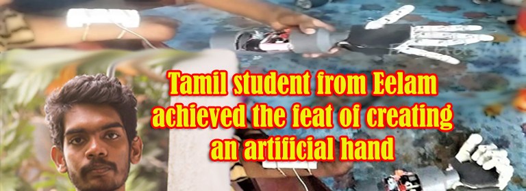 செயற்கை கை ஒன்றை உருவாக்கிச் சாதனை புரிந்துள்ள முல்லைத்தீவு தமிழ் மாணவன் துஷாபன்!