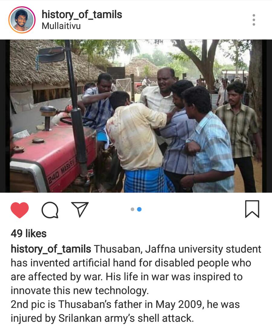 1 Posted on September 19, 2019 by TM Editorial's Leave a comment Next Return to செயற்கை கை ஒன்றை உருவாக்கிச் சாதனை புரிந்துள்ள முல்லைத்தீவு தமிழ் மாணவன் துஷாபன்!