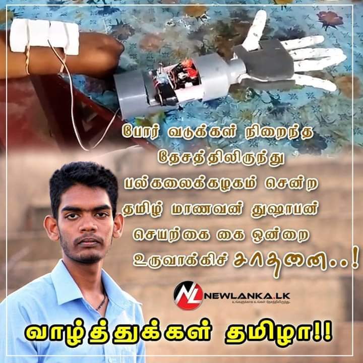 6 Posted on September 19, 2019 by TM Editorial's Leave a comment Previous Next Return to செயற்கை கை ஒன்றை உருவாக்கிச் சாதனை புரிந்துள்ள முல்லைத்தீவு தமிழ் மாணவன் துஷாபன்!