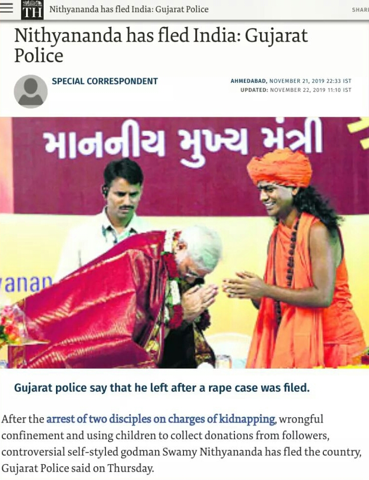 1. Nithyananda has set up the ‘Republic of Kailaasa’ on an island off Ecuador in South America, declaring it the ‘world’s greatest and purest Hindu nation’.