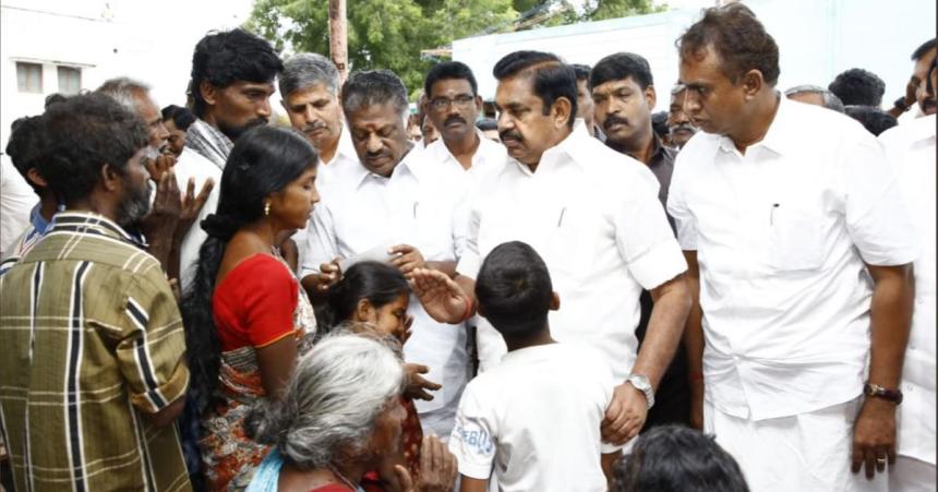 A file photo of Tamil Nadu Chief Minister K Palaniswami and his deputy O Panneerselvam meeting the families of those killed in the wall collapse in Coimbatore. | Twitter/Edappadi K Palaniswami