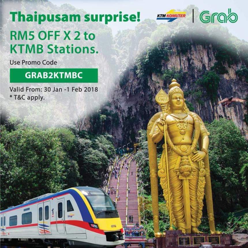Those who use Grab e-hailing service will be given RM5 discount on the fare to and from selected KTM stations when they use the promo code KTMBC2020 from Feb 7 to 9.